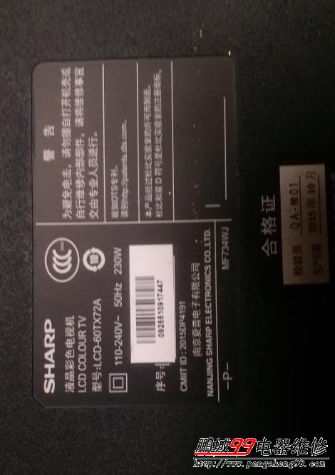夏普LCD-60TX72A電源板不通電,不開機,指示燈不亮