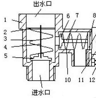 如上圖,安全閥包含:1、殼體,2、定位片,3、反向截止閥彈簧,4、反向閥芯,5、反向截止閥膠墊,6、安全閥膠墊,7、手動(dòng)桿,8、密封圈,9、壓力調(diào)節(jié)盤,10、安全閥彈簧,11、鉚釘,12、手柄,13、安全螺釘。