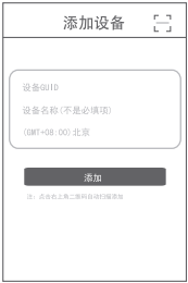 3. 設(shè)備添加--登陸后點(diǎn)擊右上方“+”添加GUID, 可直接輸入GUID號或掃描產(chǎn)品中GUID二維碼