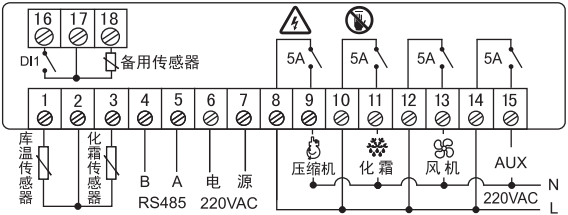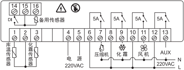 2、化霜控制(化霜周期設(shè)置為0時,不化霜):