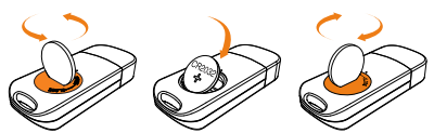 借助硬幣嵌入電池蓋凹槽旋轉,打開電池蓋,更換電 池后,重新關閉電池蓋;