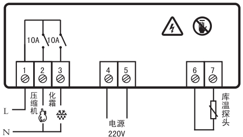 一繼電器觸點輸出容量:壓縮機(jī)10A/220VAC(或16A/220VAC可直接驅(qū)動單相1HP壓機(jī))、化霜10A/220VAC