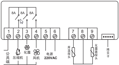 7)端口輸出容量:制冷:8A 除霜:8A 風機:8A