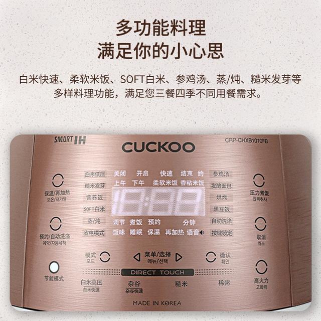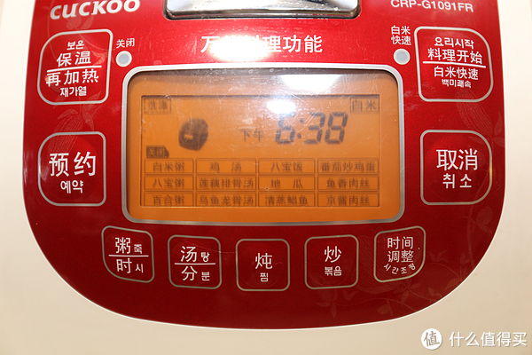 韓國電飯煲沒有中文怎么使用各個功能,韓國品牌CUCKOO福庫電飯煲CUCHEN酷晨電飯煲按鍵面板功能中文翻譯與對照圖片,直接上圖:從下述多個圖中可以看到,有個規(guī)律:按鍵面板最左邊的功能鍵,左上功能鍵為“保溫/再加熱”;左下功能鍵為“預(yù)約”;按鍵面板最右邊的功能鍵,右上功能鍵為“壓力煮飯/白米快速”,右下功能鍵為“取消”;其它功能鍵那就不是統(tǒng)一的位置了。