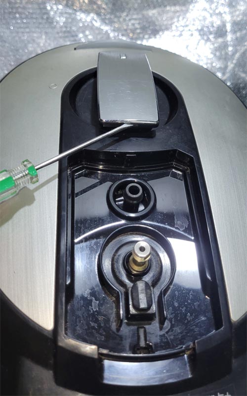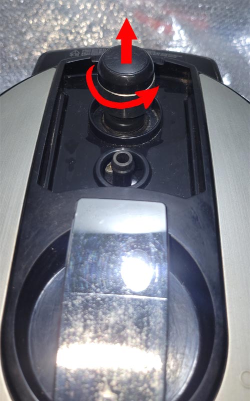 第二步,拆壓力閥:壓力閥里面是有螺紋的,先用手將壓力閥向上提起來(lái),同時(shí)逆時(shí)針?lè)较蜣D(zhuǎn)動(dòng)壓力閥,壓力閥就直接被擰下來(lái)了,如下圖: