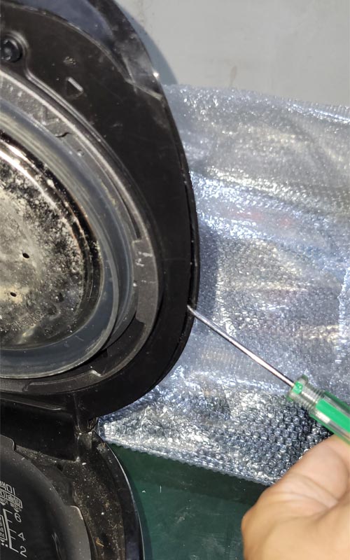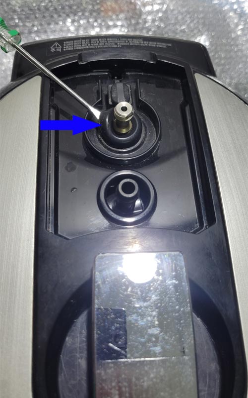 第三步,將壓力閥下面的橡膠防塵帽用一字螺絲刀撬起來(lái),如下圖: