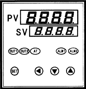 在SV/PV正常顯示狀態(tài)下,按一下 “SET” 鍵,使SV顯示處于閃爍狀態(tài), 通過按“<”鍵,找到所需設(shè)定溫度位數(shù),再按一下 “SET” 使儀表轉(zhuǎn)到SV/PV正常顯示狀態(tài)。