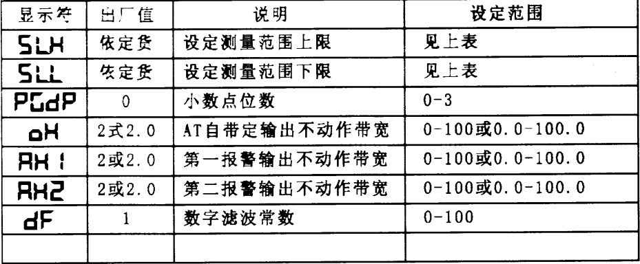 | 顯示符 | 設(shè)定值 | 說明 | 量程范圍 | |||